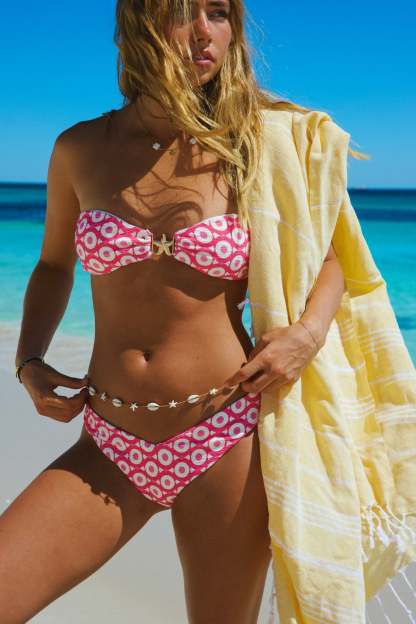 The Gold Coast Bandeau Super Cheeky Set highlights the Lotus bandeau top and Polo super cheeky bottoms for a bold, strapless silhouette. In the radiant Gold Coast tone, this set is made for soaking up every golden hour moment.