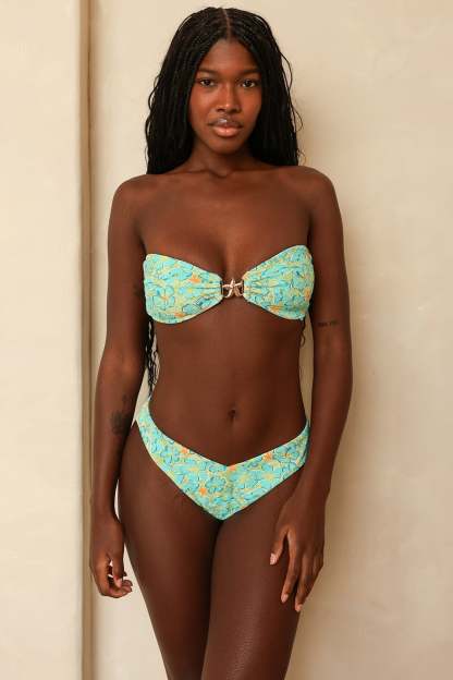 The Ocean Cafe Bandeau Super Cheeky Set features the Lotus bandeau top and Polo super cheeky bottoms for a sleek, confident silhouette. The deep Ocean Cafe hue adds a sophisticated edge to this bold swim set.
